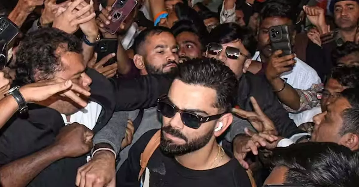 ವಡೋದರಾ ವಿಮಾನ ನಿಲ್ದಾಣದಲ್ಲಿ ಕೊಹ್ಲಿಯನ್ನು ನೋಡಲು ಮುಗಿಬಿದ್ದ ಅಭಿಮಾನಿಗಳು: ವೀಡಿಯೊ ವೈರಲ್