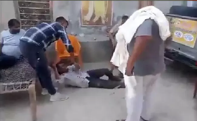 Cow viglante @bittubajrangi34 #bittubajrangi in controversy yet again as he thrashes a youth in presence of a cop. The youth according to him was luring two young girls into his room with malicious intentions. Bajrangi's gang brought him to Bajrangi to teach a 'Lesson'.… pic.twitter.com/yfplmzkhdG
