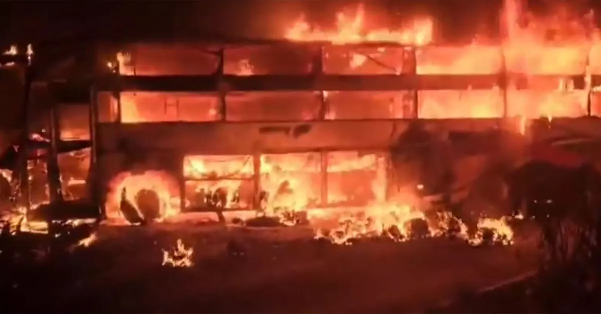 ನೆಲ್ಲೂರಿನಿಂದ ಹೈದರಾಬಾದ್ಗೆ ತೆರಳುತ್ತಿದ್ದ ಖಾಸಗಿ ಬಸ್ನ ಟೈರ್ ಸಿಡಿದು ಚಾಲಕನ ನಿಯಂತ್ರಣ ತಪ್ಪಿದ ಪರಿಣಾಮ ಎದುರಿನಿಂದ ಬರುತ್ತಿದ್ದ ಲಾರಿಗೆ ಢಿಕ್ಕಿ ಹೊಡೆದಿದೆ. ಢಿಕ್ಕಿಯ ತೀವ್ರತೆಯಿಂದ ಬಸ್ಗೆ ತಕ್ಷಣವೇ ಬೆಂಕಿ ಹೊತ್ತಿಕೊಂಡಿತು.