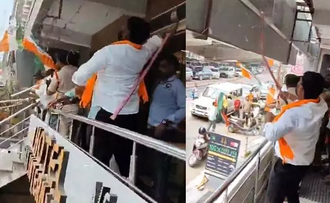 Men calling themselves nationalists vandalising an Indian owned Karachi bakery in Hyderabad.
