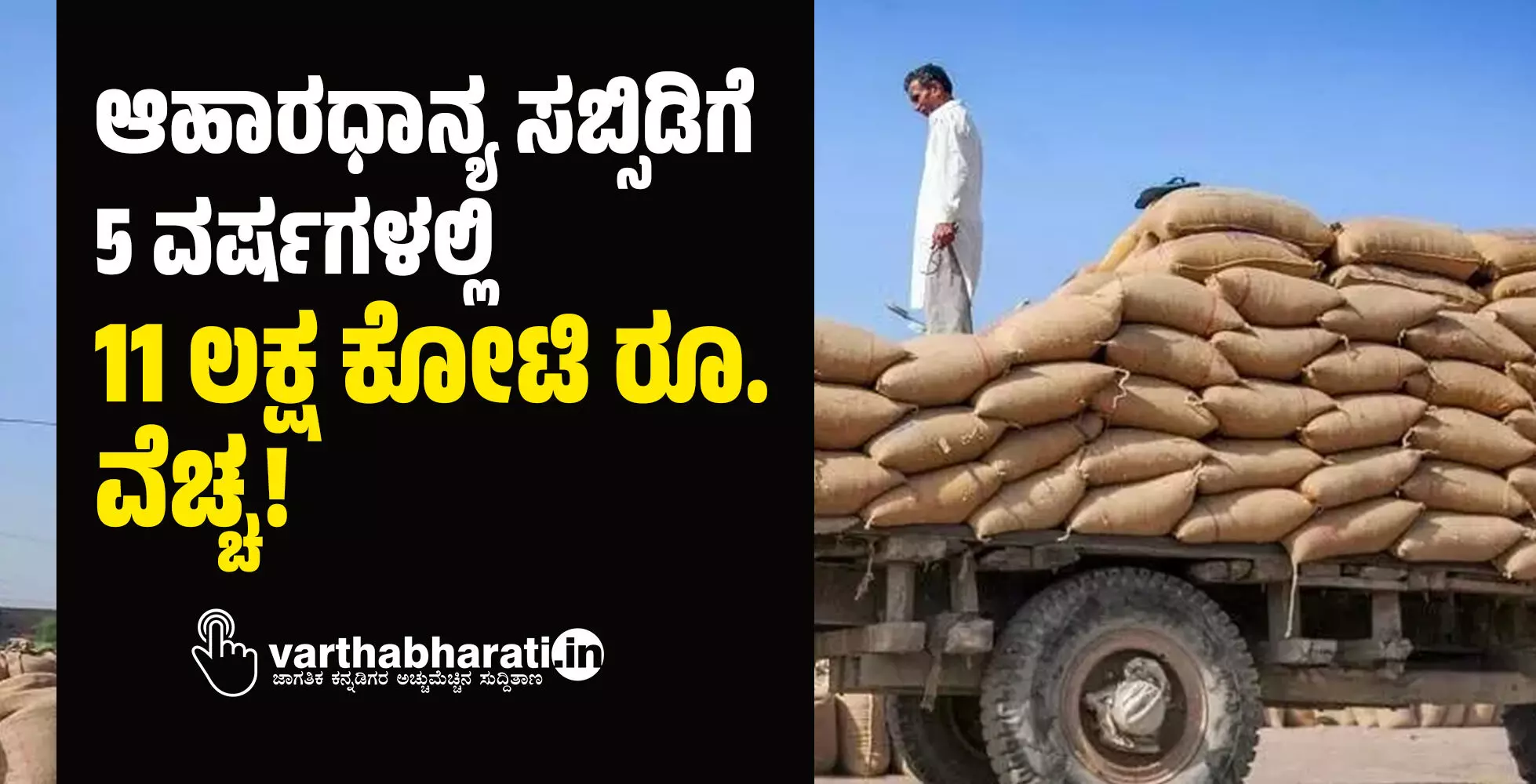 ಆಹಾರಧಾನ್ಯ ಸಬ್ಸಿಡಿಗೆ 5 ವರ್ಷಗಳಲ್ಲಿ 11 ಲಕ್ಷ ಕೋಟಿ ರೂ. ವೆಚ್ಚ!