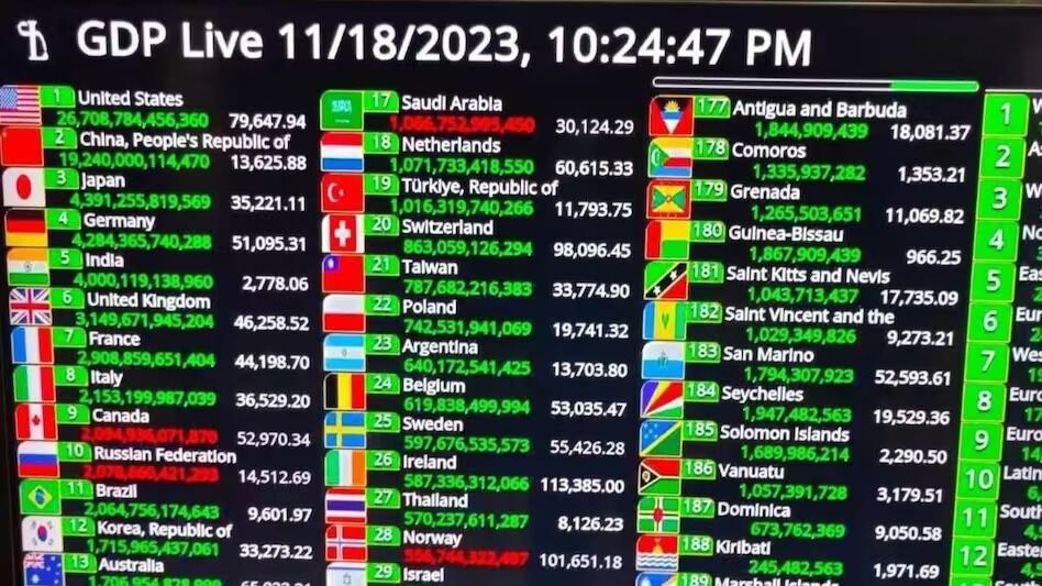 ರಾಷ್ಟ್ರದ ಜಿಡಿಪಿ 4 ಟ್ರಿಲಿಯನ್ ಡಾಲರ್ ಮೀರಿದೆ ಎಂದು ಸೂಚಿಸುವ ಸ್ಕ್ರೀನ್ಶಾಟ್ ಒಂದು ಸಾಮಾಜಿಕ ಮಾಧ್ಯಮದಲ್ಲಿ ರವಿವಾರ ವೈರಲ್ ಆಗಿದೆ. ಇದನ್ನು ಹಲವಾರು ಮಾಧ್ಯಮ ಸಂಸ್ಥೆಗಳು ಎತ್ತಿಕೊಂಡು ಶೇರ್ ಮಾಡಿ, ಸಾಧನೆಯನ್ನು ಶ್ಲಾಘಿಸಿವೆ. ಭಾರತವು ಮೂರನೇ ಅತಿದೊಡ್ಡ ಆರ್ಥಿಕತೆಯಾಗಿ ಬ್ರಿಟನ್ ಅನ್ನು ಹಿಂದಿಕ್ಕುವ ದಿನ ತುಂಬಾ ದೂರವಿಲ್ಲ ಎಂದು ಭಾರತದ ಅಭಿವೃದ್ಧಿಯನ್ನು ಸ್ವಾಗತಿಸುವ ಹೇಳಿಕೆಗಳೂ ಬಂದವು.