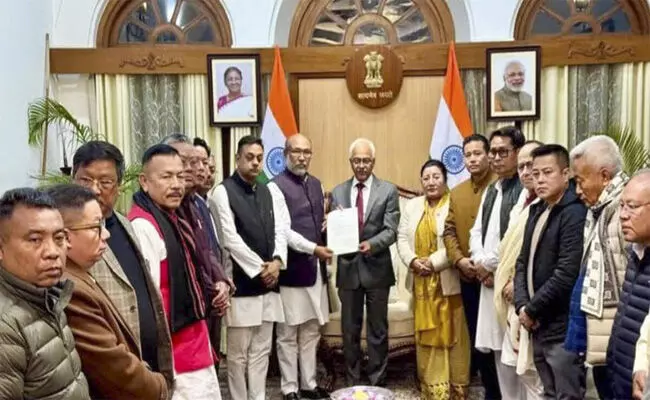 ಫೆಬ್ರವರಿ 9ರಂದು ಎನ್.ಬಿರೇನ್ ಸಿಂಗ್ ತಮ್ಮ ಮುಖ್ಯಮಂತ್ರಿ ಹುದ್ದೆಗೆ ರಾಜೀನಾಮೆ ಸಲ್ಲಿಸಿದಾಗಿನಿಂದ ಉಂಟಾಗಿರುವ ನಾಯಕತ್ವ ಬಿಕ್ಕಟ್ಟಿನ ಬೆನ್ನಿಗೇ ಈ ಮನವಿಯನ್ನು ಮಾಡಲಾಗಿದೆ.