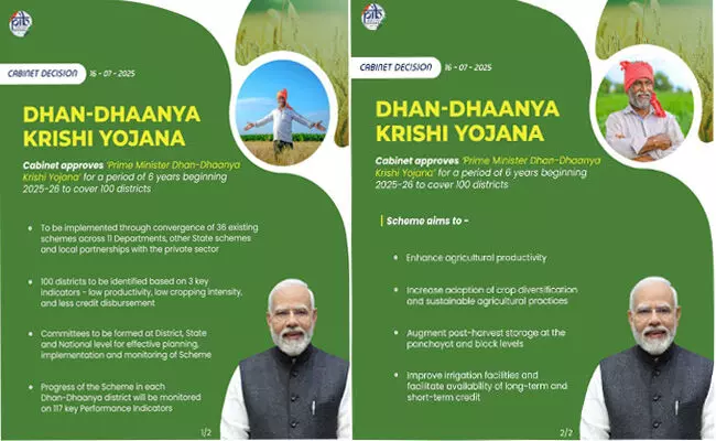 ಪಿಎಂ ಧನ-ಧಾನ್ಯ ಕೃಷಿ ಯೋಜನೆಗೆ ಕೇಂದ್ರ ಸಂಪುಟದ ಅನುಮೋದನೆ