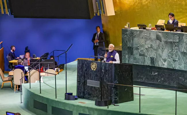 ವಿಶ್ವಸಂಸ್ಥೆ: ವಿಶ್ವಸಂಸ್ಥೆಯ ಸಾಮಾನ್ಯ ಸಭೆಯ ಉನ್ನತ ವೇದಿಕೆಯಿಂದ ವಿಶ್ವಶಾಂತಿಗಾಗಿ ತನ್ನ ಸಂದೇಶವನ್ನು ಪುನರುಚ್ಚರಿಸಿದ ಪ್ರಧಾನಿ ನರೇಂದ್ರ ಮೋದಿಯವರು,ಉನ್ನತ ಜಾಗತಿಕ ಸಂಸ್ಥೆಗಳಲ್ಲಿ ಸುಧಾರಣೆಗಳಿಗೆ ಕರೆ ನೀಡಿದರು. ಸುಧಾರಣೆಯು ಪ್ರಸ್ತುತತೆಯ ಕೀಲಿ ಕೈ ಎಂದು ಅವರು ಒತ್ತಿ ಹೇಳಿದರು.