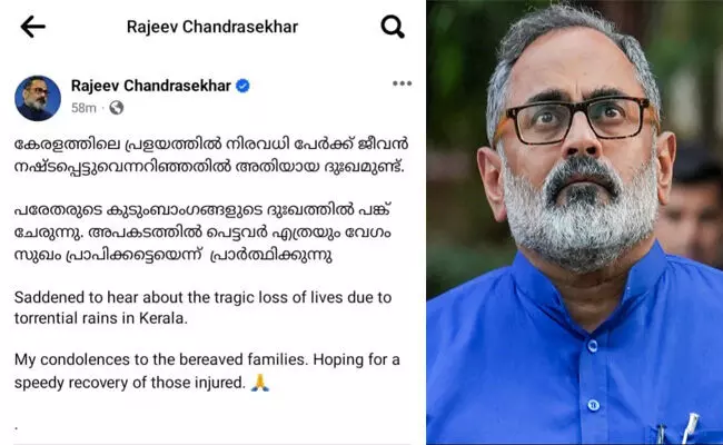 ‘ಕೇರಳದಲ್ಲಿ ಪ್ರವಾಹದಿಂದಾಗಿ ಪ್ರಾಣಹಾನಿಯ ಬಗ್ಗೆ ಕೇಳಿ ದುಃಖವಾಗಿದೆ. ಸಂತ್ರಸ್ತ ಕುಟುಂಬಗಳಿಗೆ ನನ್ನ ಸಂತಾಪಗಳು. ಗಾಯಾಳುಗಳು ಶೀಘ್ರ ಗುಣಮುಖರಾಗಲಿ ಎಂದು ಹಾರೈಸುತ್ತೇನೆ ’ಎಂದು ಚಂದ್ರಶೇಖರ್ ಗುರುವಾರ ಫೇಸ್ಬುಕ್ ಪೋಸ್ಟ್ನಲ್ಲಿ ಹೇಳಿದ್ದರು.
