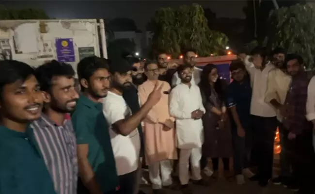 ಎಬಿವಿಪಿ ಆಯೋಜಿಸಿದ್ದ ದೀಪಾವಳಿ ಕಾರ್ಯಕ್ರಮದಲ್ಲಿ ಭಾಗವಹಿಸಿದವರು ಮುಸ್ಲಿಂ ವಿದ್ಯಾರ್ಥಿಗಳನ್ನು ಉದ್ದೇಶಿಸಿ ‘ಜೈ ಶ್ರೀ ರಾಮ್’ ಘೋಷಣೆಗಳನ್ನು ಕೂಗಿದ್ದು, ಆ ಬಳಿಕ ಗಲಾಟೆ ನಡೆದಿದೆ. ಗುಂಪನ್ನು ಚದುರಿಸಲು ಪೊಲೀಸರು ಲಾಠಿ ಪ್ರಹಾರ ನಡೆಸಿದ್ದಾರೆ.