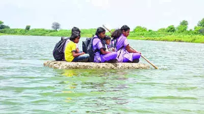 ತಪ್ಪದ ಸಂಕಷ್ಟಕ್ಕೆ ತೆಪ್ಪದ ಪರಿಹಾರ: ಪ್ರತಿದಿನ ವಿದ್ಯಾರ್ಥಿಗಳ ಜಲಯಾನ
