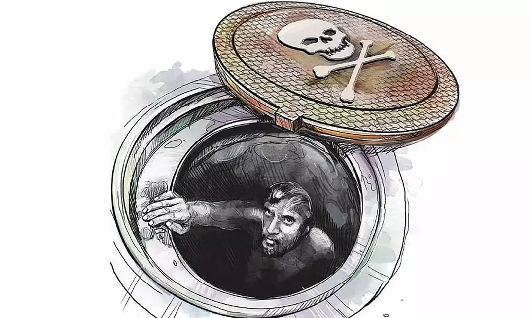 ಪಾಯಿಕಾನೆಯ ಗುಂಡಿಯ ಒಳಗಿಳಿದ ಅವರಪ್ಪನನು