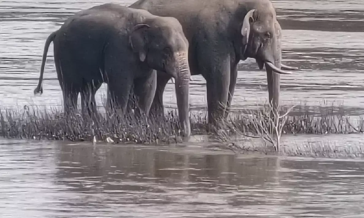 ಶನಿವಾರ ರಾತ್ರಿ ಸುರ್ಯದ ಸುಬ್ರಹ್ಮಣ್ಯ ಭಟ್ ಎಂಬವರ ತೋಟದಲ್ಲಿ ಇದ್ದ ಕಾಡಾನೆಗಳು ರಾತ್ರಿ ವೇಳೆ ಸರಳೀಕಟ್ಟೆ, ಪಿಲಿಗೂಡು, ಅಂಬೊಟ್ಟು ಮಾರ್ಗವಾಗಿ ಇಳಂತಿಲ ಗ್ರಾಮದ ಅಂಡೆತಡ್ಕ ಎಂಬಲ್ಲಿಂದ ನೇತ್ರಾವತಿ ನದಿಗಿಳಿದಿದೆ. ಬೆಳಗ್ಗಿನ ಜಾವವೇ ಉಪ್ಪಿನಂಗಡಿ ಬಳಿಯ ಕೂಟೇಲುವಿನ ನೇತ್ರಾವತಿ ನದಿಯಲ್ಲಿ ಕಾಡಾನೆಗಳ ಇರುವಿಕೆ ಜನಗಳಿಗೆ ತಿಳಿದು ಆನೆಗಳನ್ನು ನೋಡಲು ನದಿಯತ್ತ ಜನ ತಂಡೋಪತಂಡವಾಗಿ ಆಗಮಿಸತೊಡಗಿ ದರು. ಇದರಿಂದ ಗಲಿಬಿಲಿಗೊಂಡ ಆನೆ ನದಿಯ ಎರಡೂ ಪಾಶ್ರ್ವಕ್ಕೂ ಸಾಗಿ ದಡದತ್ತ ಹೋಗಲು ಸಾಧ್ಯವಾಗದೆ ಬಳಿಕ ನದಿ ಮಧ್ಯದ ದಿನ್ನೆಯಲ್ಲಿ ನಿಂತುಕೊಂಡಿತ್ತು.