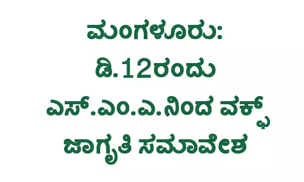 ಮಂಗಳೂರು: ಡಿ.12ರಂದು ಎಸ್. ಎಂ. ಎ.ನಿಂದ ವಕ್ಫ್ ಜಾಗೃತಿ ಸಮಾವೇಶ