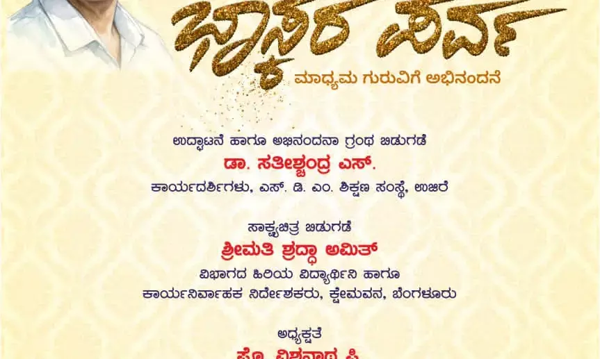 ಬೆಳಗ್ಗೆ 10 ಗಂಟೆಗೆ, ಉಜಿರೆಯ ಇಂದ್ರಪ್ರಸ್ಥ ಸಭಾಂಗಣದಲ್ಲಿ ನಡೆಯಲಿರುವ ಸಮಾರಂಭದ ಉದ್ಘಾಟನೆ ಹಾಗೂ ಅಭಿನಂದನಾ ಗ್ರಂಥದ ಬಿಡುಗಡೆಯನ್ನು ಎಸ್ಡಿಎಂ ಶಿಕ್ಷಣ ಸಂಸ್ಥೆಗಳ ಕಾರ್ಯದರ್ಶಿ ಡಾ. ಸತೀಶ್ ಚಂದ್ರ ಎಸ್ ನೆರವೇರಿಸಲಿದ್ದಾರೆ.