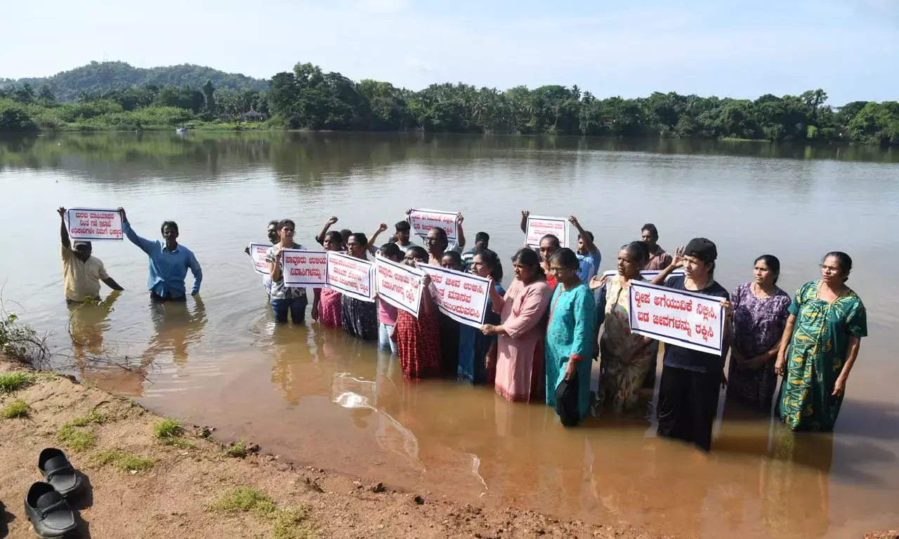 ಪಾವೂರು ಉಳಿಯ ದ್ವೀಪ ಪ್ರದೇಶದಲ್ಲಿ ಮತ್ತೆ ಅಕ್ರಮ ಮರಳುಗಾರಿಕೆ ಆರಂಭಗೊಂಡಿದೆ. ಇದರಿಂದ ದ್ವೀಪ ಮುಳುಗಡೆ ಭೀತಿ ಎದುರಿಸುತ್ತಿವೆ ಎಂದು ಆರೋಪಿಸಿದ ದ್ವೀಪ ನಿವಾಸಿಗಳು ನೀರಿನಲ್ಲಿ ಭಾಗಶಃ ಮುಳುಗಿ ವಿಶಿಷ್ಟ ರೀತಿಯಲ್ಲಿ ಪ್ರತಿಭಟನೆ ನಡೆಸಿದರು.