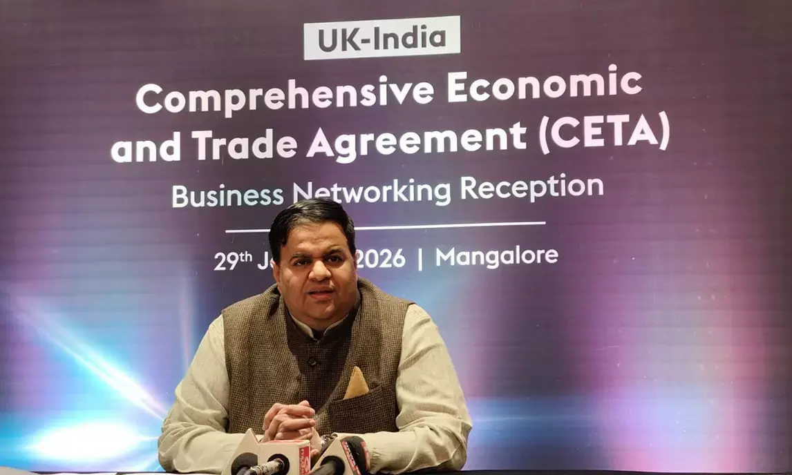 ಮಂಗಳೂರು: ಭಾರತ ಮತ್ತು ಯು.ಕೆ. ನಡುವಿನ ಸಮಗ್ರ ಅರ್ಥಿಕ ಹಾಗೂ ವಾಣಿಜ್ಯ ಒಪ್ಪಂದ (ಸೀಟಾ)ವು ಶೀಘ್ರ ಇಂಗ್ಲೆಂಡ್ನ ಸಂಸತ್ತಿನಲ್ಲಿ ಅನುಮೋದನೆ ಪಡೆಯುವ ನಿರೀಕ್ಷೆ ಇದೆ. ಅದರ ಭಾಗವಾಗಿ ಕರ್ನಾಟಕದ ಉದ್ಯಮ ಗಳಿಗೂ ಇಂಗ್ಲಂಡ್ನಲ್ಲಿ ಹೊಸ ಅವಕಾಶಗಳು ಸೃಷ್ಟಿಯಾಗುವ ನಿರೀಕ್ಷೆ ಇದೆ ಎಂದು ಬ್ರಿಟಿಷ್ ಡೆಪ್ಯುಟಿ ಹೈ ಕಮಿಷನರ್ (ಕೇರಳ-ಕರ್ನಾಟಕ) ಚಂದ್ರು ಅಯ್ಯರ್ ತಿಳಿಸಿದ್ದಾರೆ.