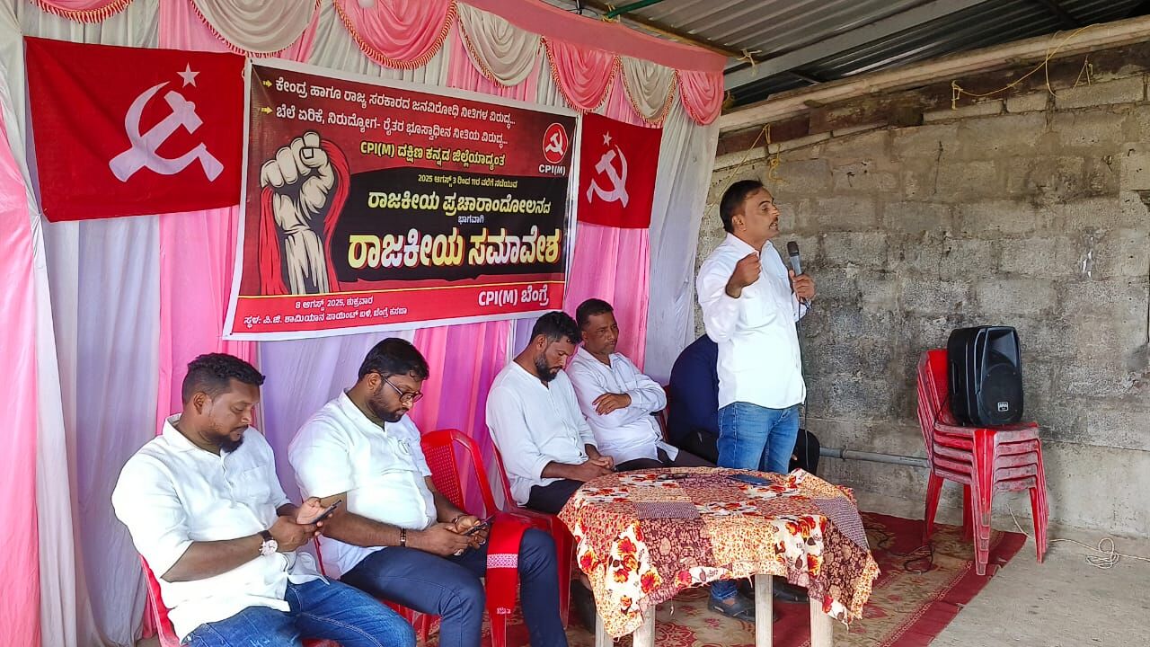 ಮಂಗಳೂರು, ಆ. 8: ಕೇಂದ್ರ ಹಾಗೂ ರಾಜ್ಯ ಸರಕಾರದ ಜನವಿರೋಧಿ ನೀತಿಗಳ ವಿರುದ್ಧ,ಬೆಲೆ ಏರಿಕೆ, ನಿರುದ್ಯೋಗ- ರೈತರ ಭೂಸ್ವಾಧೀನ ನೀತಿಯ ವಿರುದ್ಧ CPIMದಕ್ಷಿಣ ಕನ್ನಡ ಜಿಲ್ಲೆಯಾದ್ಯಂತ ಆ. 3 ರಿಂದ 11ರ ವರೆಗೆ ನಡೆಯುವ ರಾಜಕೀಯ ಪ್ರಚಾರಾಂದೋಲನದ ಭಾಗವಾಗಿ ಮಂಗಳೂರಿನ CPIM ದಕ್ಷಿಣ ಭಾಗದ ಕಸಬಾ ಬೆಂಗ್ರೆ ಪ್ರದೇಶದ ಫುಟ್ಬಾಲ್ ಮೈದಾನದ ಸಮೀಪ ಪಿ.ಜಿ.ಪಾಯಿಂಟ್ ಬಳಿ ರಾಜಕೀಯ ಸಮಾವೇಶ ಕಾರ್ಯಕ್ರಮ ರವಿವಾರ ನಡೆಯಿತು.