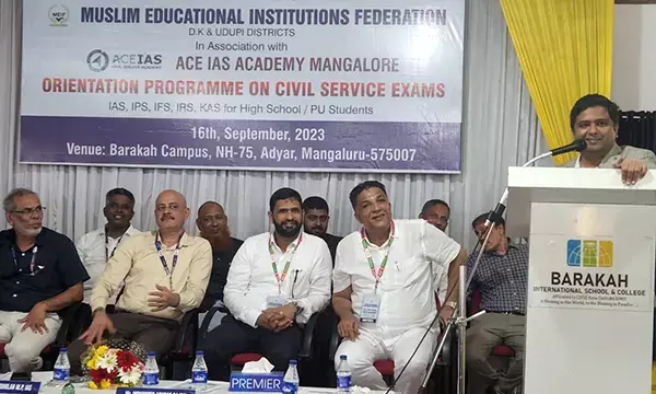 ಮಂಗಳೂರು: ದ.ಕ. ಮತ್ತು ಉಡುಪಿ ಜಿಲ್ಲೆಗಳ ಮುಸ್ಲಿಂ ಶಿಕ್ಷಣ ಸಂಸ್ಥೆಗಳ ಒಕ್ಕೂಟ ಮತ್ತು ಮಂಗಳೂರು 'ಏಸ್' ಐಎಎಸ್ ಫೌಂಡೇಶನ್ ಸಹಭಾಗಿತ್ವದಲ್ಲಿ ಮಂಗಳೂರು ಅಡ್ಯಾರ್ ಬರಕಾ ಇಂಟರ್ನ್ಯಾಷನಲ್ ವಿದ್ಯಾಸಂಸ್ಥೆಯ ಸಭಾಂಗಣದಲ್ಲಿ ಐಎಎಸ್, ಐಪಿಎಸ್ ಮೊದಲಾದ ನಾಗರಿಕ ಸೇವೆ ಪರೀಕ್ಷೆಗಳ ಆಯ್ಕೆ ಟ್ರಯಲ್ಸ್ ನ ಅಂಗವಾಗಿ ಜಿಲ್ಲಾ ಮಟ್ಟದ ಪ್ರೇರಣಾ ಶಿಬಿರ ಆಯೋಜಿಸಲಾಗಿತ್ತು.