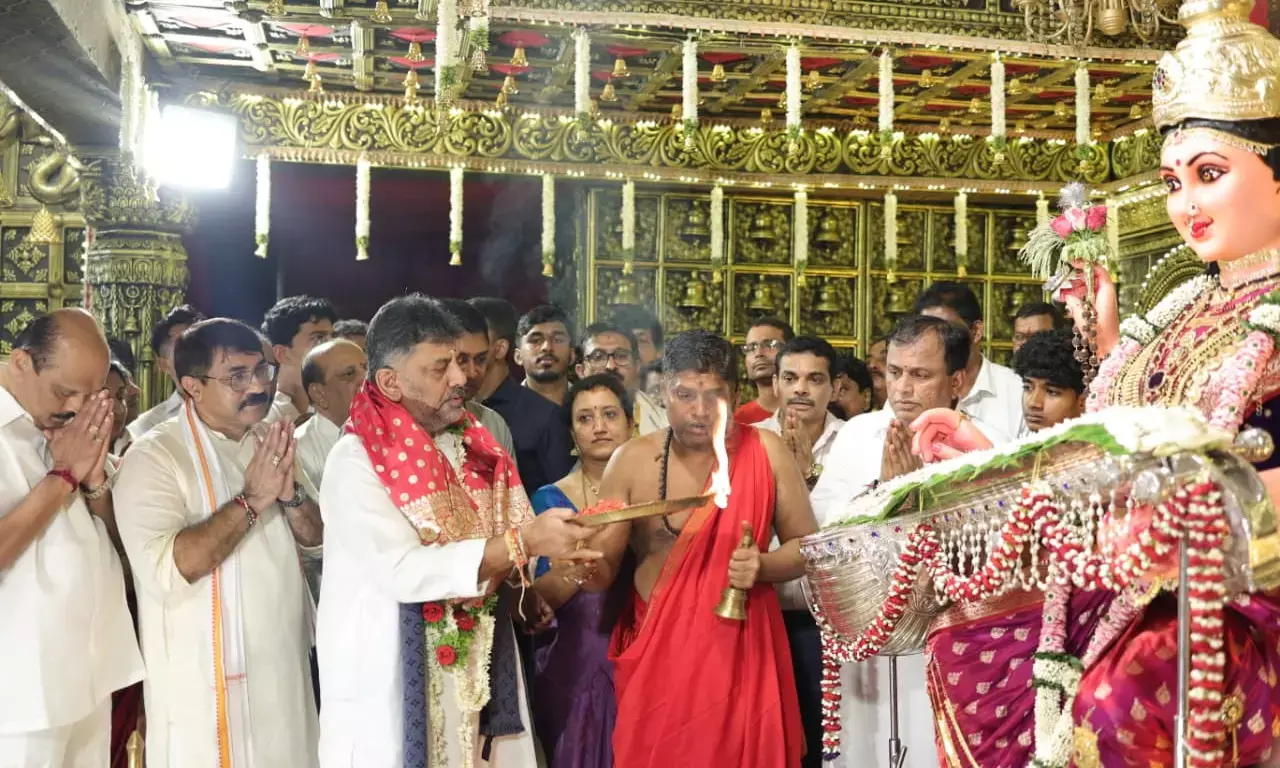 ಮಂಗಳೂರು: ರಾಜ್ಯ ಉಪಮುಖ್ಯಮಂತ್ರಿ ಡಿ.ಕೆ.ಶಿವಕುಮಾರ್ ಕುದ್ರೋಳಿ ಶ್ರೀ ಗೋಕರ್ಣನಾಥ ಕ್ಷೇತ್ರಕ್ಕೆ ಬುಧವಾರ ರಾತ್ರಿ ಭೇಟಿ ನೀಡಿ ಮಂಗಳೂರು ದಸರಾ ವೈಭವಕ್ಕೆ ಮೆಚ್ಚುಗೆ ವ್ಯಕ್ತಪಡಿಸಿದರು.