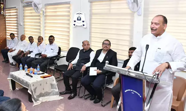 ಮಂಗಳೂರು ವಕೀಲರ ಸಂಘದ ಸಭಾಭವನದಲ್ಲಿ ನಡೆದ ಸಭೆಯ ಅಧ್ಯಕ್ಷತೆಯನ್ನು ಮಂಗಳೂರು ವಕೀಲರ ಸಂಘದ ಅಧ್ಯಕ್ಷ ಎಚ್.ವಿ.ರಾಘವೇಂದ್ರ ವಹಿಸಿದ್ದರು.