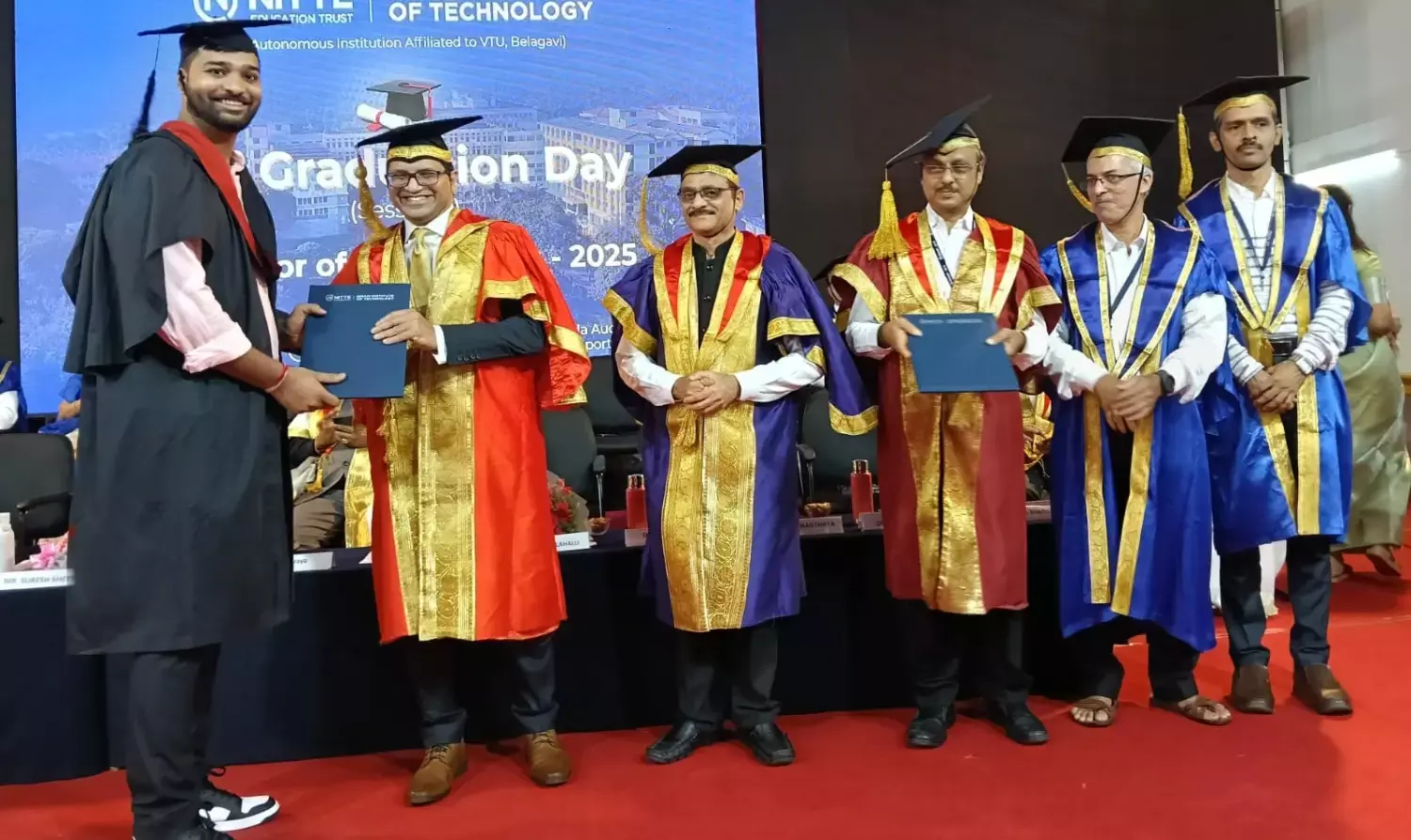 ನಿಟ್ಟೆ ವಿ.ವಿ. ಕುಲಸಚಿವ ಡಾ. ಹರ್ಷ ಹಾಲಹಳ್ಳಿ ಅವರು ಶುಭ ಹಾರೈಸಿದರು. ತಾಂತ್ರಿಕ ಶಿಕ್ಷಣ ವಿಭಾಗದ ಉಪಾಧ್ಯಕ್ಷ ಡಾ. ಗೋಪಾಲ್ ಮುಗೆರಾಯ ಅಧ್ಯಕ್ಷತೆ ವಹಿಸಿ ಮಾತನಾಡಿದರು. ಶೈಕ್ಷಣಿಕ ಸಾಧನೆಗೈದ ವಿದ್ಯಾರ್ಥಿಗಳನ್ನು ಚಿನ್ನ ಮತ್ತು ಬೆಳ್ಳಿಯ ಪದಕ ನೀಡುವ ಮೂಲಕ ಗುರುತಿಸಲಾಯಿತು. 2025ನೇ ಸಾಲಿನಲ್ಲಿ ಬಿ.ಇ. ಪದವೀಧರರಾದ ಬಯೋಟೆಕ್ನಾಲಜಿ, ಸಿವಿಲ್ ಎಂಜಿನಿಯರಿಂಗ್, ಕಂಪ್ಯೂಟರ್ ಆ್ಯಂಡ್ ಕಮ್ಯುನಿಕೇಶನ್ ಎಂಜಿನಿಯರಿಂಗ್, ಕಂಪ್ಯೂಟರ್ ಸೈನ್ಸ್ ಆ್ಯಂಡ್ ಎಂಜಿನಿಯರಿಂಗ್, ಮೆಕ್ಯಾನಿಕಲ್ ಎಂಜಿನಿಯರಿಂಗ್ ಮತ್ತು ರೊಬೋಟಿಕ್ಸ್ ಆ್ಯಂಡ್ ಆರ್ಟಿಫಿಷಿಯಲ್ ಇಂಟೆಲಿಜೆನ್ಸ್ ವಿಭಾಗದ ವಿದ್ಯಾರ್ಥಿಗಳಿಗೆ ಈ ಸಮಾರಂಭದಲ್ಲಿ ಪದವಿ ಪ್ರದಾನ ಮಾಡಲಾಯಿತು.