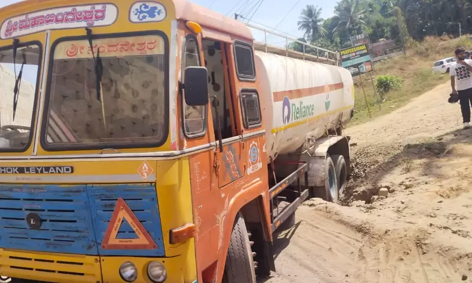 ಮಂಗಳೂರಿನಿಂದ ಚೆನ್ನೈಗೆ ಡೀಸೆಲ್ ಹೇರಿಕೊಂಡು ಹೋಗುತ್ತಿದ್ದ ಟ್ಯಾಂಕರ್ ಚಾಲಕ ಕಲ್ಲಡ್ಕ ಸರ್ವೀಸ್ ರೋಡ್ ನಲ್ಲಿ ವಿರುದ್ದ ದಿಕ್ಕಿನಲ್ಲಿ ಸಂಚರಿಸಿದ್ದು ನಿಯಂತ್ರಣ ತಪ್ಪಿ ಚರಂಡಿಗೆ ಬಿದ್ದಿದೆ. ಇದರಿಂದ ಸುಮಾರು ಒಂದು ಗಂಟೆ ಕಾಲ ಟ್ರಾಫಿಕ್ ಜಾಮ್ ಉಂಟಾಗಿತ್ತು.