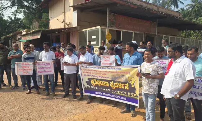 ಕಾನ | ಚತುಷ್ಪಥ ರಸ್ತೆ ಕಾಮಗಾರಿ ಶೀಘ್ರ ಪೂರ್ಣಗೊಳಿಸಲು ಆಗ್ರಹಿಸಿ ಧರಣಿ