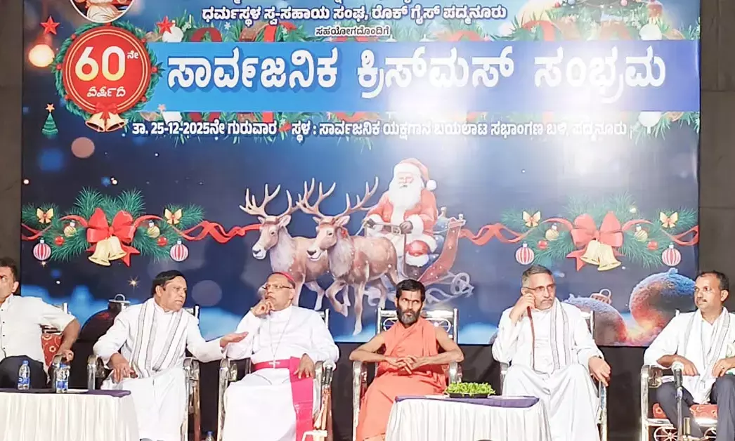 ಕಿನ್ನಿಗೋಳಿ: ಇಲ್ಲಿನ ಪದ್ಮನೂರು ಸಾರ್ವಜನಿಕ ಯಕ್ಷಗಾನ ಬಯಲಾಟ ಸಮಿತಿ ನೇತೃತ್ವದಲ್ಲಿ ಮಂಗಳೂರು ಉತ್ತರ ವಲಯದ ಸ್ಥಳೀಯ 7 ಚರ್ಚ್ ಗಳು, ಕೊಸೆಸಮ್ಮನವರ ಚರ್ಚ್ ಕಿನ್ನಿಗೋಳಿ, ಜ್ಯೋತಿ ಮಹಿಳಾ ಮಂಡಳಿ, ಧರ್ಮಸ್ಥಳ ಸ್ವ-ಸಹಾಯ ಸಂಘ, ರಾಕ್ ಗೈಸ್ ಪದ್ಮನೂರು ಇವರುಗಳ ಸಹಯೋಗದೊಂದಿಗೆ 60ನೇ ವರ್ಷದ ಸಾರ್ವಜನಿಕ ಕ್ರಿಸ್ಮಸ್ ಸಂಭ್ರಮವು ಪದ್ಮನೂರು ಸಾರ್ವಜನಿಕ ಯಕ್ಷಗಾನ ಬಯಲಾಟ ಸಭಾಂಗಣ ಗುರುವಾರ ರಾತ್ರಿ ನಡೆಯಿತು.