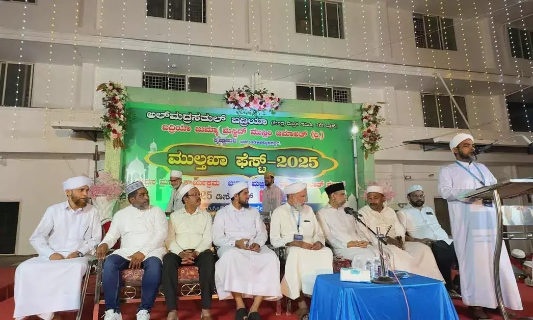 ಸುರತ್ಕಲ್ : ಬದ್ರಿಯಾ ಜುಮ್ಮಾ ಮಸ್ಟಿದ್ ಮುಸ್ಲಿಂ ಜಮಾಅತ್ (ರಿ) ಕೃಷ್ಣಾಪುರ ಇದರ ಆಡಳಿತಕ್ಕೊಳಪಟ್ಟಿರುವ ಅಲ್ಮದ್ರಸತುಲ್ ಬದ್ರಿಯಾದ "ಮುಕ್ತಖಾ ಫೆಸ್ಟ್-2025" ಪ್ರಯುಕ್ತ ಮದ್ರಸ ಮಕ್ಕಳ ಕಾರ್ಯಕ್ರಮ, ಬುರ್ದಾ ಮಜ್ಜಿಸ್, ವಾರ್ಷಿಕ ಸ್ವಲಾತ್ ಮಜ್ಜಿಸ್ ಹಾಗೂ ಮತ ಪ್ರಭಾಷಣದ ಸಮಾರೋಪ ಸಮಾರಂಭವು ಗುರುವಾರ ಮಸೀದಿಯ ವಠಾರದಲ್ಲಿ ಜರುಗಿತು.