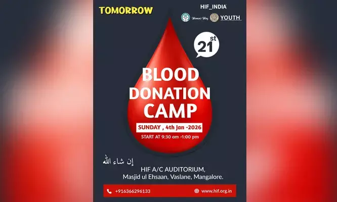 ಮಂಗಳೂರು: ಜ.4ರಂದು HIF ವತಿಯಿಂದ ರಕ್ತದಾನ ಶಿಬಿರ