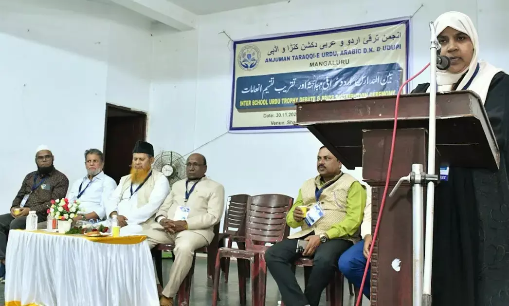 ಬೋಳಾರದ ಶಾದಿ ಮಹಲ್ನಲ್ಲಿ ರವಿವಾರ ದಕ್ಷಿಣ ಕನ್ನಡ ಮತ್ತು ಉಡುಪಿ ಜಿಲ್ಲಾ ಅಂಜುಮನ್ ತರಖಿ-ಎ- ಉರ್ದು ಮತ್ತು ಅರೇಬಿಕ್ ಸಂಸ್ಥೆ ಆಯೋಜಿಸಿದ್ದ ಉರ್ದು ಚರ್ಚಾ ಚಾಂಪಿಯನ್ಶಿಪ್ ಟ್ರೋಫಿ- 2025ರ ಬಹುಮಾನ ವಿತರಣೆ ನೆರವೇರಿಸಿ ಅವರು ಮಾತನಾಡಿದರು.
