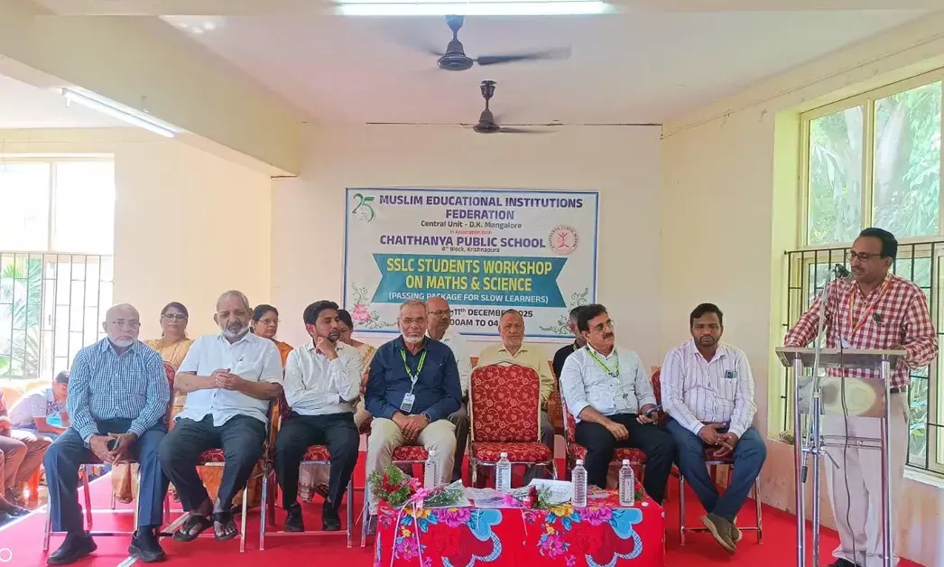 ಕೃಷ್ಣಾಪುರ,ಡಿ.10: ಮುಸ್ಲಿಂ ಶಿಕ್ಷಣ ಸಂಸ್ಥೆಗಳ ಒಕ್ಕೂಟದ ಕೇಂದ್ರ ಘಟಕದ ವತಿಯಿಂದ ಕೃಷ್ಣಾಪುರದ ಚೈತನ್ಯ ಪಬ್ಲಿಕ್ ಸ್ಕೂಲ್ನ ಸಹಯೋಗದಿಂದ 2025-26ನೇ ಸಾಲಿನ ಎಸೆಸೆಲ್ಸಿ ಆಯ್ದ ವಿದ್ಯಾರ್ಥಿಗಳಿಗೆ ಪಾಸಿಂಗ್ ಪ್ಯಾಕೇಜ್ ಎರಡು ದಿವಸಗಳ ಕಾರ್ಯಾಗಾರದ ಉದ್ಘಾಟನೆಯು ಬುಧವಾರ ಚೈತನ್ಯ ಪಬ್ಲಿಕ್ ಸ್ಕೂಲ್ನ ಸಭಾಂಗಣದಲ್ಲಿ ನಡೆಯಿತು.
