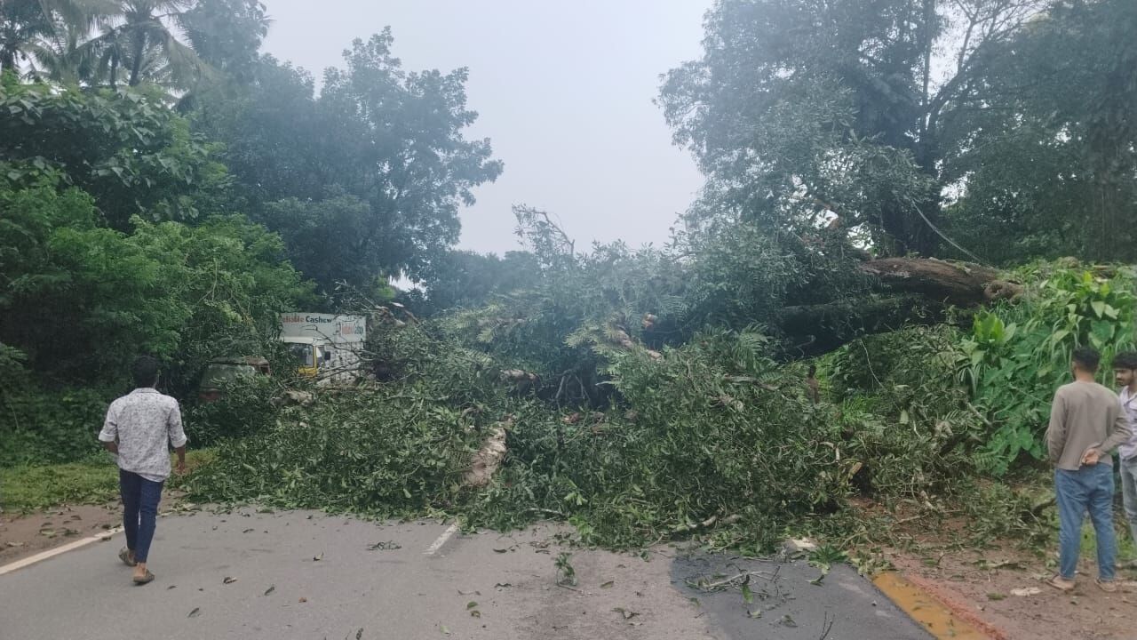 ಸ್ಥಳೀಯರು ಮರಗಳನ್ನು ತೆರವುಗೊಳಿಸಿ ರಸ್ತೆಯನ್ನು ಸಂಚಾರ ಮುಕ್ತಗೊಳಿಸಿದರು.