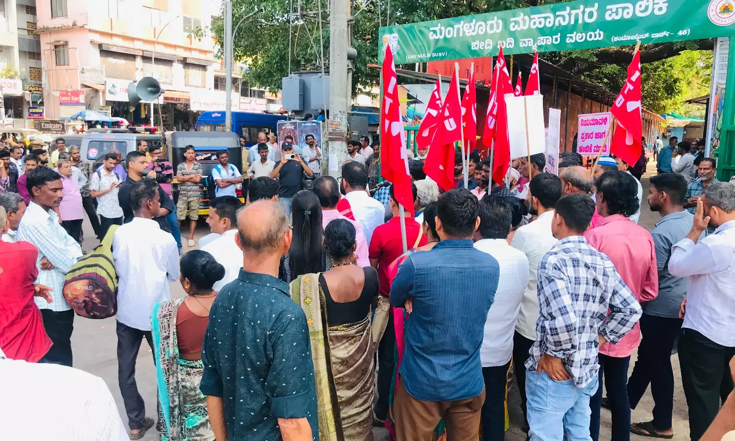 ನಗರದ ಬೀದಿ ವ್ಯಾಪಾರ ವಲಯದ ಎದುರು ಅವೈಜ್ಞಾನಿಕ, ಅಸುರಕ್ಷಿತ ಮತ್ತು ಅಸಮರ್ಪಕ ಬೀದಿ ವ್ಯಾಪಾರ ವಲಯ ದಲ್ಲಿ ವ್ಯಾಪಾರ ಮಾಡಲು ಬಲವಂತ ಮಾಡುತ್ತಿರುವ ನಗರ ಪಾಲಿಕೆ ಅಧಿಕಾರಿಗಳ ದಬ್ಬಾಳಿಕೆ ಖಂಡಿಸಿ ಸಿಐಟಿಯು ಅಧೀನದ ದ.ಕ.ಜಿಲ್ಲಾ ಬೀದಿಬದಿ ವ್ಯಾಪಾರಸ್ಥರ ಸಂಘದ ವತಿಯಿಂದ ಸೋಮವಾರ ನಡೆದ ಪ್ರತಿಭಟನೆಯನ್ನು ಉದ್ಧೇಶಿಸಿ ಅವರು ಮಾತನಾಡುತ್ತಿದ್ದರು.