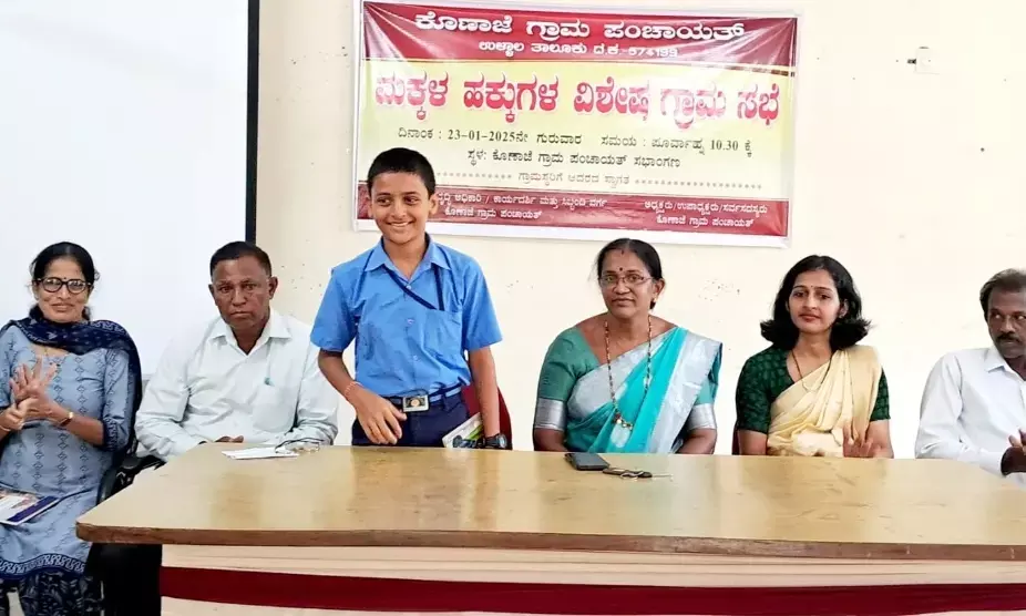 ಗುರುವಾರದಂದು ಕೊಣಾಜೆ ಗ್ರಾಮ ಪಂಚಾಯತಿ ವ್ಯಾಪ್ತಿಯ ಮಕ್ಕಳ ಹಕ್ಕುಗಳ ವಿಶೇಷ ಗ್ರಾಮ ಸಭೆ ಆಯೋಜಿಸ ಲಾಗಿತ್ತು. ಸಭೆಯಲ್ಲಿ ಗ್ರಾಮದ ವಿವಿಧ ಶಾಲೆಗಳ ವಿದ್ಯಾರ್ಥಿಗಳು ತಮ್ಮ ಶಾಲೆ ಹಾಗೂ ಪರಿಸರದ ಸಮಸ್ಯೆಯ ಬಗ್ಗೆ ಅಳವತ್ತುಕೊಂಡರು.