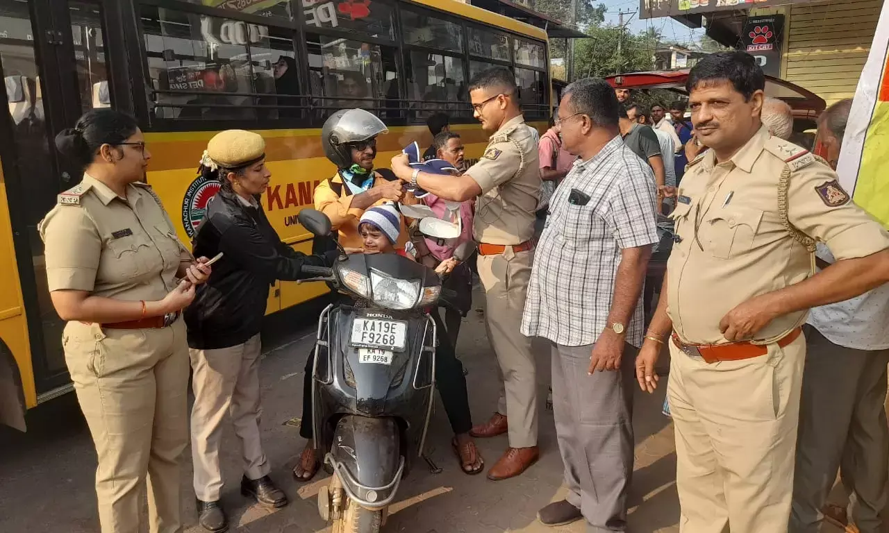 ದ್ವಿಚಕ್ರ ವಾಹನಗಳ ಹಿಂಬದಿ ಸವಾರರಿಗೂ ಹೆಲ್ಮೆಟ್ ಕಡ್ಡಾಯವಾಗಿದ್ದರೂ ಬೇಕಾಬಿಟ್ಟಿಯಾಗಿ ನಿಯಮ ಉಲ್ಲಂಘಿಸುವ ಸವಾರರಿಗೆ ಇಂದಿನ ಕಾರ್ಯಾಚರಣೆ ಬಿಸಿ ಮುಟ್ಟಿಸಿದೆ. ಮಾಸಾಚರಣೆ ಅಂಗವಾಗಿ ಯಾವುದೇ ದಂಡ ವಿಧಿಸಿದೇ ಸವಾರರಿಗೆ ಕಾನೂನಿನ ಬಗ್ಗೆ ವಿವರಿಸಿದ ಅಧಿಕಾರಿಗಳು ಮಿತಿ ದರದಲ್ಲಿ ತಲಾ ಐನೂರರಂತೆ ಹೆಲ್ಮೆಟ್ ಪಡೆಯಲು ಸೂಚಿಸಿದರು. ಎಳೆಯ ಪುಟಾಣಿಗಳ ಬೇಜವಾಬ್ದಾರಿಯಿಂದ ಕುಳ್ಳಿರಿಸುವ ಸವಾರರಿಗೆ ಇಲಾಖೆಯ ವತಿಯಿಂದಲೇ ಉಚಿತ ಸೇಫ್ಟಿ ಬೆಲ್ಟ್ ವಿತರಿಸಲಾಗಿದೆ.