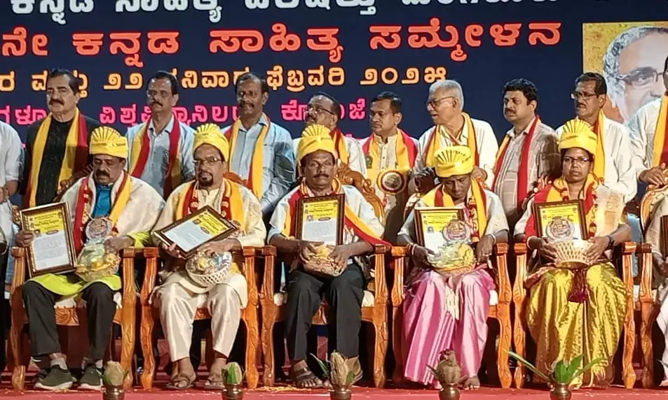 ಸಮಾರಂಭದಲ್ಲಿ ವಿವಿಧ ಕ್ಷೇತ್ರದಲ್ಲಿ ಸಾಧನೆ ಮಾಡಿದ 13 ಮಂದಿ ಸಾಧಕರಿಗೆ ಒಂದು ಸಂಸ್ಥೆಗೆ ಸನ್ಮಾನದ ಗೌರವ ನೀಡಲಾಯಿತು. ಸನ್ಮಾನಿತರು ;-ಉಡುಪಿಯ ಜಿಲ್ಲಾಧಿಕಾರಿ ಡಾ. ವಿದ್ಯಾಕುಮಾರಿ ಪಾವೂರು, ಕಾದಂಬರಿಕಾರ ಡಾ. ಪ್ರಭಾಕರ ನೀರುಮಾರ್ಗ, ಮಂಗಳೂರು; ಸಾಮಾಜಿಕ ಮುಖಂಡ ವೆಂಕಪ್ಪ ಕಾಜವ ಮಿತ್ತಕೋಡಿ, ಮುಡಿಪು; ಕಲಾವಿದ ಎಂ.ಜಿ.ಕಜೆ, ಸುಳ್ಯ; ಲೇಖಕ ಪರಮಾನಂದ ಸಾಲಿಯಾನ್, ಮೂಲ್ಕಿ; ಪತ್ರಕರ್ತ ಧನಂಜಯ ಮೂಡಬಿದಿರೆ; ವರ್ಣಚಿತ್ರ ಕಲಾವಿದ ಮೋನಪ್ಪ, ಪುತ್ತೂರು; ಶಿಕ್ಷಕರು ಮತ್ತು ಕ್ರೀಡಾಪಟು ಪ್ರೇಮಾಗೌಡ, ಕಡಬ; ಕರಾವಳಿಯ ಪಾರಂಪರಿಕ ವಸ್ತುಸಂಗ್ರಹಕಾರರಾಗಿರುವ ಶಶಿಕುಮಾರ್ ಭಟ್ ಪಡಾರು, ವಿಟ್ಲ; ಜಲ ಸಂವರ್ಧನ ತಜ್ಞ ಡಾ. ಜೋಸೆಫ್ ಎನ್ ಎಮ್, ಬೆಳ್ತಂಗಡಿ; ಶಾಂತಿ ಪ್ರಕಾಶನದ ವ್ಯವಸ್ಥಾಪಕ ಮಹಮ್ಮದ್ ಕುಂಞಿ ತೊಕ್ಕೊಟ್ಟು, ಮಂಗಳೂರು; ಮಂಗಳೂರು ವಿಶ್ವವಿದ್ಯಾನಿಲಯದ ಸಹಾಯಕ ಪ್ರಾಧ್ಯಾಪಕರಾಗಿರುವ ಡಾ. ಸಬಿತ ಕೊರಗ, ಕೊಣಾಜೆ ಇವರನ್ನು ಸನ್ಮಾನಿಸಲಾ ಗುವುದು. ಗಡಿನಾಡಿನಲ್ಲಿ ಕನ್ನಡ ವಿಸ್ತರಣೆಯ ಸೇವೆಗಾಗಿ ನಿರಂಜನರ ಕಾದಂಬರಿಗಳ ಮಲಯಾಳ ಅನುವಾದಕರಾಗಿರುವ ಪಯ್ಯನ್ನೂರು ಕುಂಞ್ಞಿರಾಮನ್ ಮಾಸ್ತರ್ ಮತ್ತು ಸಂಸ್ಥೆಗಳಿಗೆ ನೀಡುವ ಗೌರವಕ್ಕೆ ಕುರಿಯ ವಿಠಲ ಶಾಸ್ತ್ರಿ ಸಾಂಸ್ಕೃತಿಕ ಪ್ರತಿಷ್ಠಾನ (ರಿ.) ಉಜಿರೆ ಇವರನ್ನು ಸಮ್ಮೇಳನದಲ್ಲಿ ಸನ್ಮಾನಿಸಲಾಯಿತು.