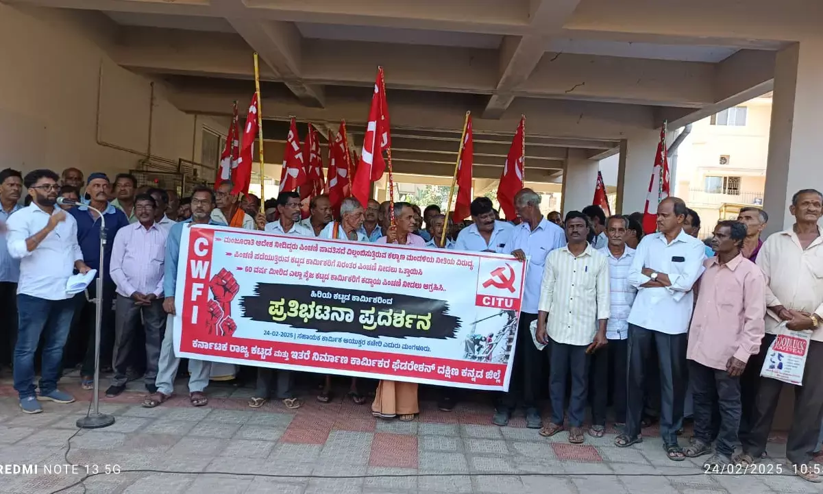 ನೈಜ ಕಟ್ಟಡ ಕಾರ್ಮಿಕರಿಗೆ ಪಿಂಚಣಿ ಖಾತ್ರಿಗೊಳಿಸಲು ಒತ್ತಾಯಿಸಿ ಸಿಐಟಿಯು ಪ್ರತಿಭಟನೆ