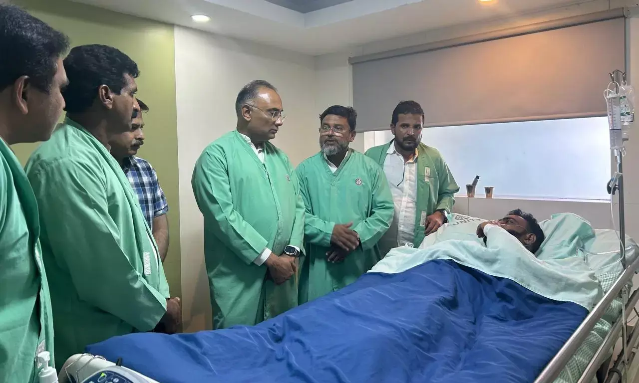 ಮಂಗಳೂರು: ದುಷ್ಕರ್ಮಿಗಳಿಂದ ಶುಕ್ರವಾರ ಮುಂಜಾವ ಚೂರಿ ಇರಿತಕ್ಕೊಳಗಾಗಿ ಗಂಭೀರ ಗಾಯ ಗೊಂಡು ನಗರದ ಖಾಸಗಿ ಆಸ್ಪತ್ರೆಯಲ್ಲಿ ಚಿಕಿತ್ಸೆ ಪಡೆಯುತ್ತಿರುವ ಅಡ್ಯಾರ್ ಕಣ್ಣೂರಿನ ನೌಶಾದ್ನನ್ನು ಶನಿವಾರ ದ.ಕ.ಜಿಲ್ಲಾ ಉಸ್ತುವಾರಿ ಸಚಿವ ದಿನೇಶ್ ಗುಂಡೂರಾವ್ ಭೇಟಿ ನೀಡಿ ಆರೋಗ್ಯ ವಿಚಾರಿಸಿದರು. ಅಲ್ಲದೆ ಘಟನೆಯ ಬಗ್ಗೆ ಮಾಹಿತಿ ಪಡೆದುಕೊಂಡರು.