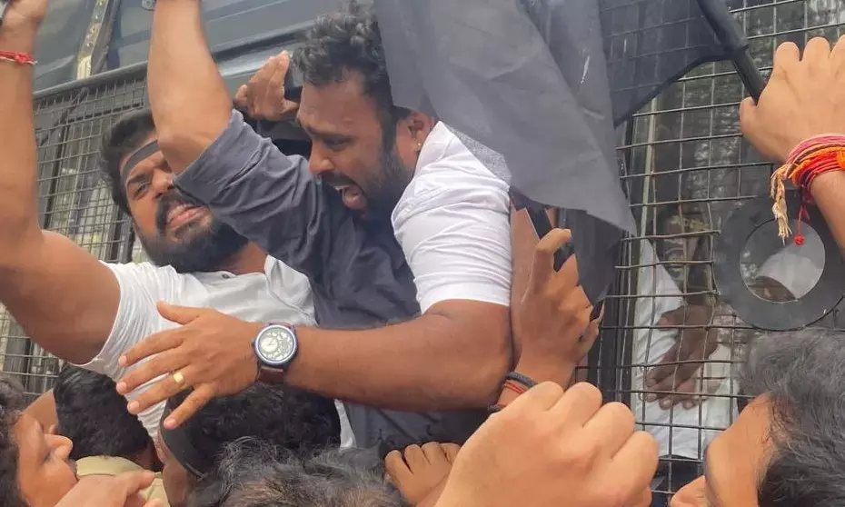 ಈ ವೇಳೆ ತಕ್ಷಣ ಕಾರ್ಯ ಪ್ರವೃತ್ತರಾದ ಪೊಲೀಸರು, ಪ್ರತಿಭಟನಾಕಾರರನ್ನು ಬಂಧಿಸಿದ್ದಾರೆ.