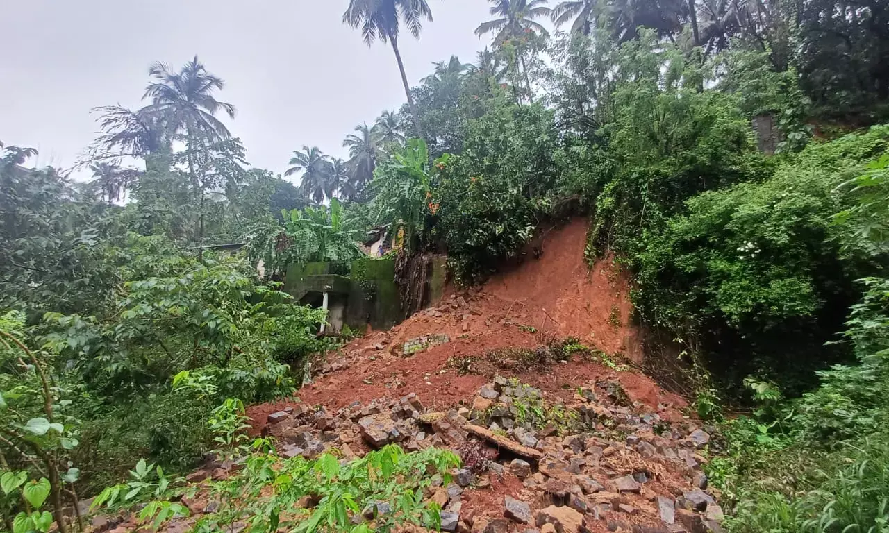 ಕೈ ಬಟ್ಟಲ್ ಬಳಿ ತಡೆಗೋಡೆ ಕುಸಿತ; ಮನೆಗೆ ಹಾನಿ
