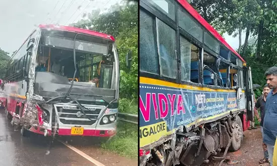 ಮಂಗಳೂರಿನಿಂದ ಮಡಿಕೇರಿಗೆ ತೆರಳುತ್ತಿದ್ದ ಹಾಗೂ ಮಡಿಕೇರಿಯಿಂದ ಬರುತ್ತಿದ್ದ ಕೆಎಸ್ಸಾರ್ಟಿಸಿ ಬಸ್ಗಳ ನಡುವೆ ಸುಳ್ಯ ತಾಲೂಕಿನ ಅರಂತೋಡು ಬಳಿಯ ತಿರುವಿನಲ್ಲಿ ಅಪಘಾತ ಸಂಭವಿಸಿದೆ.