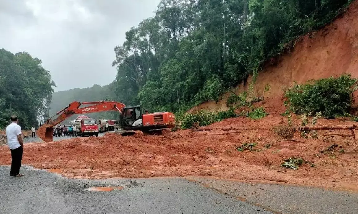 ಎರಡು ದಿನದ ಹಿಂದೆ ಇಲ್ಲಿ ಗುಡ್ಡ ಜರಿದು ರಸ್ತೆಗೆ ಮಣ್ಣು ಬಿದ್ದು ವಾಹನ ಸಂಚಾರಕ್ಕೆ ಅಡಚಣೆ ಉಂಟಾಗಿತ್ತು. ಇದೀಗ ಜೂ.26ರಂದು ಮತ್ತೆ ಮಣ್ಣು ಕುಸಿತಗೊಂಡು ಮರ, ಗಿಡಗಳ ಸಮೇತ ರಸ್ತೆಗೆ ಬಿದ್ದಿತ್ತು. ಇದರಿಂದಾಗಿ ರಾಷ್ಟ್ರೀಯ ಹೆದ್ದಾರಿಯಲ್ಲಿ ಸುಮಾರು 2 ಗಂಟೆ ವಾಹನ ಸಂಚಾರಕ್ಕೆ ಅಡಚಣೆ ಉಂಟಾಗಿತ್ತು. ಎರಡು ಕಡೆಯೂ ನೂರಾರು ವಾಹನಗಳು ಸಾಲುಗಟ್ಟಿ ನಿಂತಿದ್ದವು. ಮಣ್ಣು ತೆರವುಗೊಳಿಸಿದ ಬಳಿಕ ಹೆದ್ದಾರಿಯಲ್ಲಿ ವಾಹನ ಸಂಚಾರ ಮತ್ತೆ ಪುನರಾರಂಭಗೊಂಡಿದೆ.
