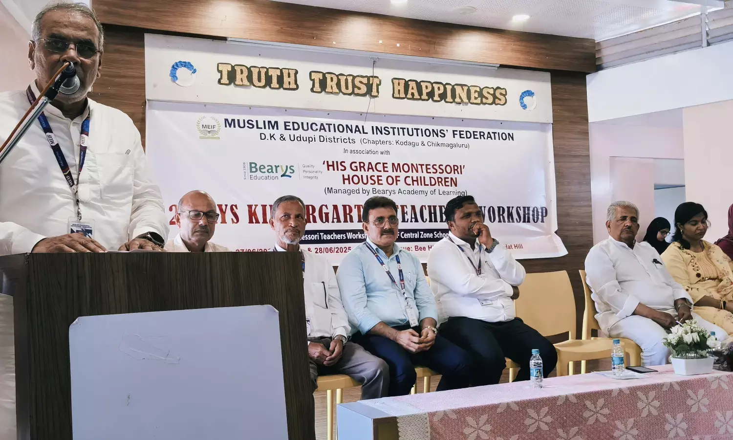 ಮೊಂಟೆಸ್ಸರಿ ತರಬೇತುದಾರರಾದ ಮುನೀರಾ ಅಖ್ತರ್ ಬೆಂಗಳೂರು, ಕುಂದಾಪುರದ ಮಾತಾ ಮೊಂಟೆಸ್ಸರಿ ಸಂಸ್ಥೆಯ ಭಾರತಿ ಪ್ರಕಾಶ್ ಶೆಟ್ಟಿ ಹಿಸ್ಗ್ರೇಸ್ ಹೌಸ್ ಆಫ್ ಚಿಲ್ಡ್ರನ್ -ಬ್ಯಾರೀಸ್ ಪಬ್ಲಿಕ್ ಸ್ಕೂಲ್ ಹ್ಯಾಟ್ಹಿಲ್ನ ಪ್ರಾಂಶುಪಾಲೆ ಖತೀಜತುಲ್ ಕುಬ್ರಾ, ಕ್ರಿಸ್ಟಿನ್ ಖಾನ್, ಪಿ. ಶರ್ಮಿಳಾ ಕಾರ್ಯಾಗಾರ ನಡೆಸಿಕೊಟ್ಟರು.