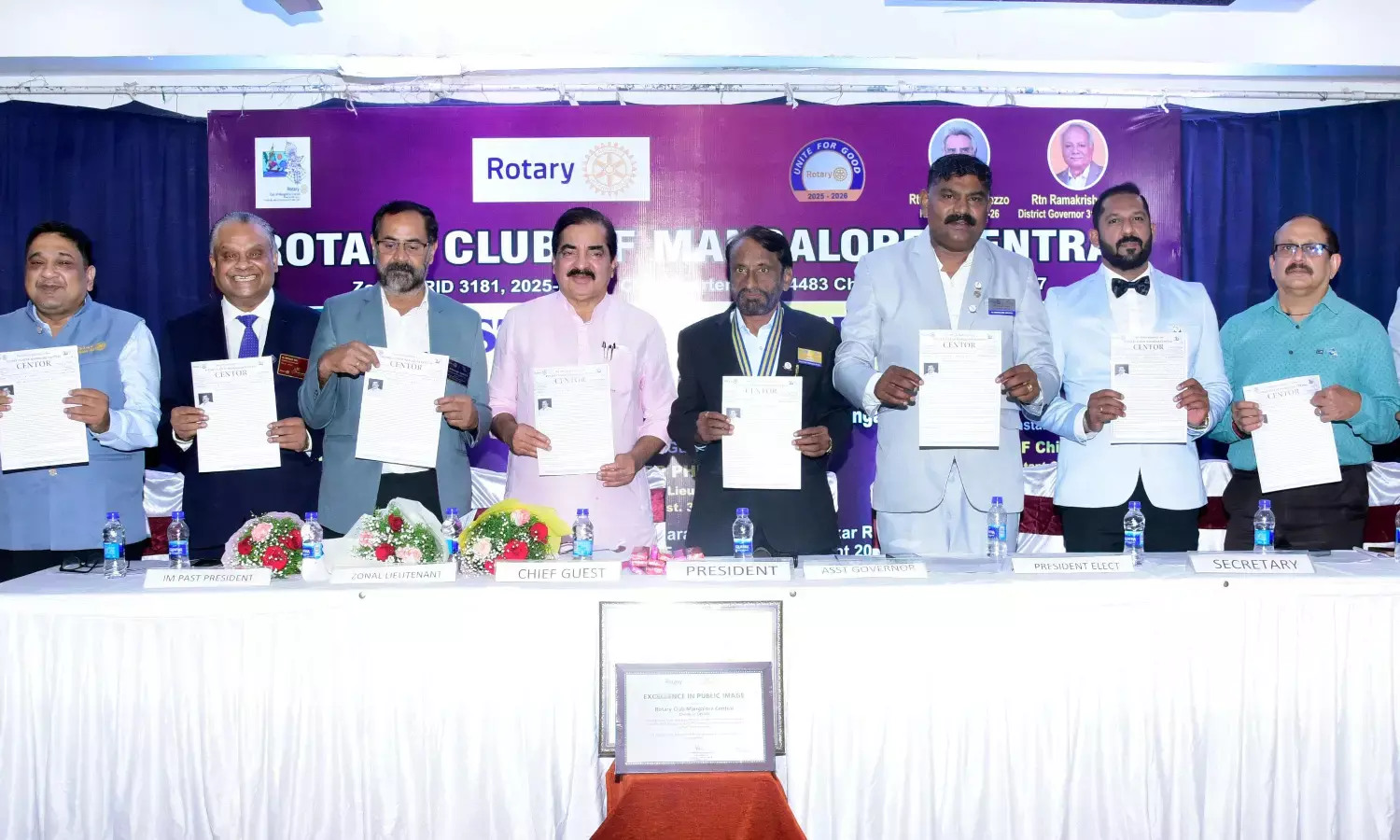 ರೋಟರಿ ಕ್ಲಬ್ ಮಂಗಳೂರು ಸೆಂಟ್ರಲ್ ನ 2025-26 ಸಾಲಿನ ಅಧ್ಯಕ್ಷ ಭಾಸ್ಕರ ರೈ ಕಟ್ಟ ಹಾಗೂ ಕಾರ್ಯದರ್ಶಿ ಯಾಗಿ ವಿಕಾಸ್ ಕೋಟ್ಯಾನ್ ಅಧಿಕಾರ ಸ್ವೀಕರಿಸಿದರು. ರೋಟರಿ ಅಸಿಸ್ಟೆಂಟ್ ಗವರ್ನರ್ ರೋಟರಿ ಜಿಲ್ಲೆ 3181 ಚೆನ್ನಗಿರಿ ಗೌಡ ನೂತನ ಪದಾಧಿಕಾರಿಗಳಿಗೆ ಪದಗ್ರಹಣ ನೆರವೇರಿಸಿ ಪ್ರಮಾಣ ವಚನ ಬೋಧಿಸಿದರು. ನಿರ್ಗಮನ ಅಧ್ಯಕ್ಷ ಬ್ರಿಯಾನ್ ಪಿಂಟೊ ಸ್ವಾಗತಿಸಿ ನೂತನ ಅಧ್ಯಕ್ಷ ರಿಗೆ ಅಧಿಕಾರ ಹಸ್ತಾಂತರ ಮಾಡಿ ಶುಭ ಹಾರೈಸಿದರು.