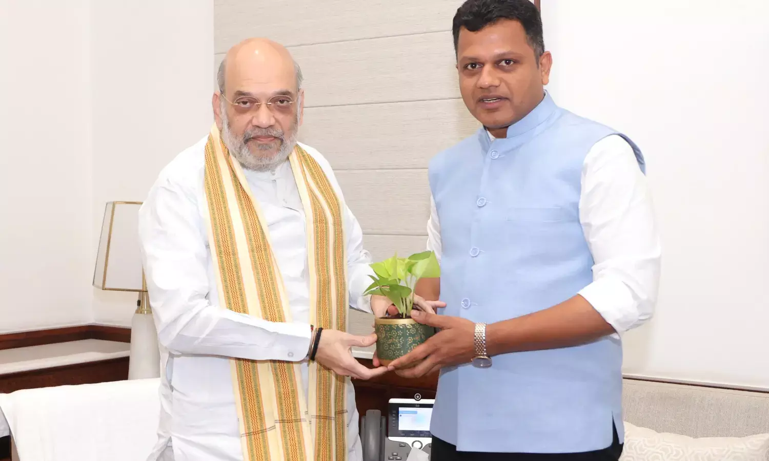 ಹೊಸದಿಲ್ಲಿಯಲ್ಲಿ ಗುರುವಾರ ಬೆಳಗ್ಗೆ ಗೃಹ ಸಚಿವರ ಕಚೇರಿಯಲ್ಲಿ ಅಮಿತ್ ಶಾರನ್ನು ಚೌಟ ಭೇಟಿಯಾಗಿ ಮಾತುಕತೆ ನಡೆಸಿದರು.