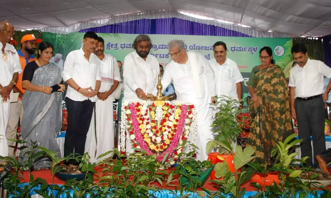 ಸಮಾರಂಭದ ಅಧ್ಯಕ್ಷತೆ ವಹಿಸಿದ್ದ ರಾಜ್ಯ ಸಭಾ ಸದಸ್ಯ,ಶ್ರೀ ಕ್ಷೇತ್ರ ಧರ್ಮಸ್ಥಳದ ಧರ್ಮಾಧಿಕಾರಿ ಡಾ.ಡಿ.ವೀರೇಂದ್ರ ಹೆಗ್ಗಡೆ ಮಾತನಾಡಿ, ಗಿಡ ನೆಡುವ ಜೊತೆ ಮರಗಳ ಸಂರಕ್ಷಣೆ ಅತೀ ಅಗತ್ಯ. ಕಾಡಿನ ಜೊತೆ ವನ್ಯಜೀವಿಗಳ ಸಂರಕ್ಷಣೆಗಾಗಿ ಫಲ ಬರುವ ಗಿಡಗಳ ಸಂರಕ್ಷಣೆಯೂ ಮುಖ್ಯ. ನಮ್ಮ ಮುಂದಿನ ಜನಾಂಗದವರಿಗೆ ಈ ಪರಿಸರವನ್ನು ಸಂರಕ್ಷಿಸಿ ನೀಡಬೇಕಾಗಿದೆ ಎಂದರು.