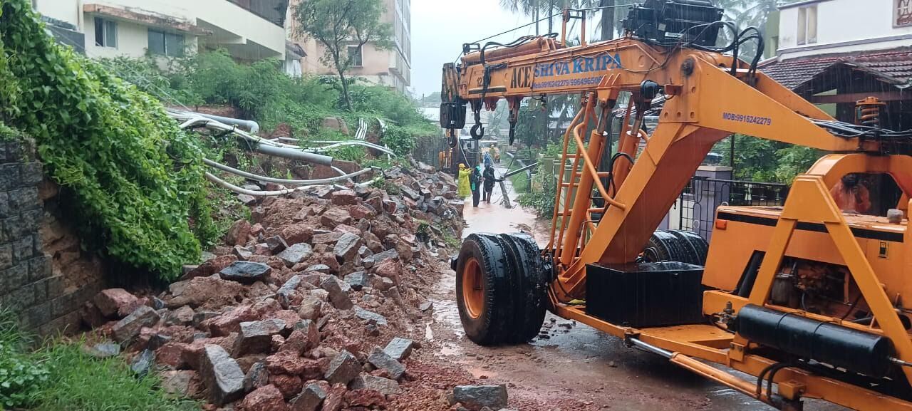 ಕಂಕನಾಡಿ ಫಾದರ್ ಮುಲ್ಲರ್ ಸಂಸ್ಥೆಯ ಆವರಣ ಗೋಡೆ ಶನಿವಾರ ಸಂಜೆ ಕುಸಿದು ಸುವರ್ಣ ಲೈನ್ ರಸ್ತೆಗೆ ಬಿದ್ದ ಪರಿಣಾಮವಾಗಿ, ಆ ರಸ್ತೆ ಬಂದ್ ಆಗಿದ್ದು, ಸುವರ್ಣ ಲೈನ್ ನಾಲ್ಕನೇ ಅಡ್ಡರಸ್ತೆ ಬಳಿ ಈ ಘಟನೆ ಸಂಭವಿಸಿದೆ. ರಸ್ತೆಗೆ ಬಿದ್ದಿರುವ ಕಲ್ಲುಗಳನ್ನು ತೆರವುಗೊಳಿಸುವ ಕಾರ್ಯ ತಕ್ಷಣ ಕೈಗೊಳ್ಳಲಾಗಿದ್ದರೂ, ಎಲ್ಲ ಕಲ್ಲುಗಳನ್ನು ತೆರವುಗೊಳಿಸಲು ಸಾಧ್ಯವಾಗದ ಹಿನ್ನೆಲೆಯಲ್ಲಿ ವಾಹನಗಳ ಸಂಚಾರಕ್ಕೆ ಅಡಚಣೆ ಉಂಟಾಗಿದೆ.