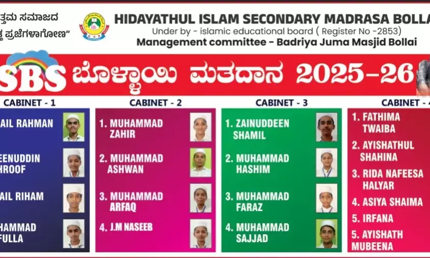 ಮಂಗಳೂರು - ಬದ್ರಿಯಾ ಜುಮಾ ಮಸೀದಿ ಬೊಳ್ಳಾಯಿ ಇದರ ಅಧೀನದಲ್ಲಿ ಕಾರ್ಯಾಚರಿಸುತ್ತಿರುವ ಹಿದಾಯತುಲ್ ಇಸ್ಲಾಂ ಸೆಕೆಂಡರಿ ಮದ್ರಸ ಇದರ ವಿದ್ಯಾರ್ಥಿಗಳ ಅಧಿಕೃತ ಒಕ್ಕೂಟ ಸುನ್ನೀ ಬಾಲ ಸಂಘ (SBS) ಇದರ ನೂತನ ಸಮಿತಿಗೆ ಚುನಾವಣೆ ಪ್ರಕ್ರಿಯೆಯು ನಾಳೆ (ಜೂ.22) ಮುಂಜಾನೆ 9 ಘಂಟೆಗೆ ಸರಿಯಾಗಿ ಆರಂಭಗೊಳ್ಳಲಿದ್ದು "ಉತ್ತಮ ಸಮಾಜದ ಉದಾತ್ತ ಪ್ರಜೆಗಳಾಗೋಣ" ಎಂಬ ಸಂದೇಶದೊಂದಿಗೆ ಚುನಾವಣೆ ನಡೆಯಲಿದೆ.