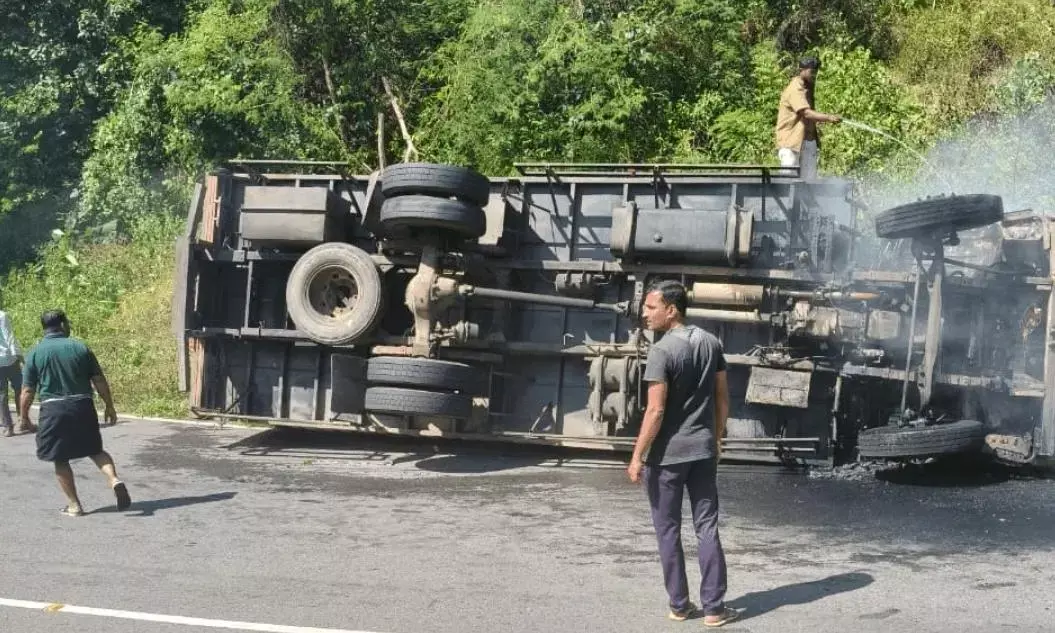 Sullia: ದೇವರಕೊಲ್ಲಿ ಬಳಿ ಲಾರಿ ಪಲ್ಟಿ