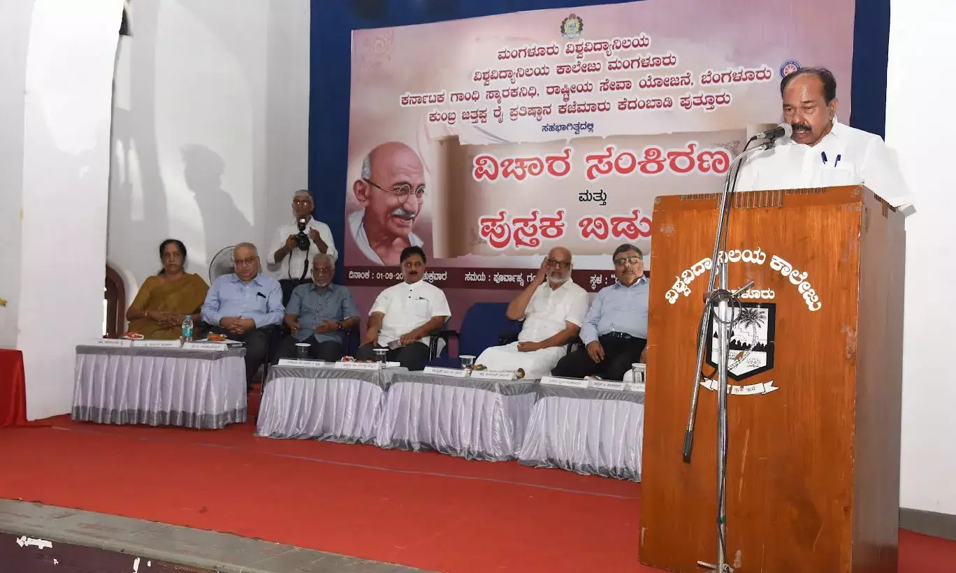 ಮಂಗಳೂರಿನ ವಿಶ್ವವಿದ್ಯಾನಿಲಯ ಕಾಲೇಜಿನ ರವೀಂದ್ರ ಕಲಾಭವನದಲ್ಲಿ ಮಂಗಳೂರು ವಿಶ್ವವಿದ್ಯಾನಿಲಯ, ವಿಶ್ವವಿದ್ಯಾನಿಲಯ ಕಾಲೇಜು, ಕರ್ನಾಟಕ ಗಾಂಧಿ ಸ್ಮಾರಕ ನಿಧಿ, ರಾಷ್ಟ್ರೀಯ ಸೇವಾ ಯೋಜನೆ, ಕಜೆಮಾರು ಕೆದಂಬಾಡಿ ಕುಂಬ್ರ ಜತ್ತಪ್ಪ ರೈ ಪ್ರತಿಷ್ಠಾನ ಸಹಭಾಗಿತ್ವದಲ್ಲಿ ಆಯೋಜಿಸಲಾದ ವಿಚಾರ ಸಂಕಿರಣ ಹಾಗೂ ಪುಸ್ತಕ ಬಿಡುಗಡೆ ಕಾರ್ಯಕ್ರಮವನ್ನು ಉದ್ಘಾಟಿಸಿ ಅವರು ಮಾತನಾಡಿದರು.