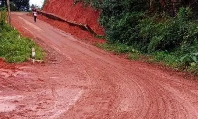 ಈ ಮಳೆಗಾಲದ ಆರಂಭದಲ್ಲಿ ರಸ್ತೆ ಬದಿಯ ತಡೆಗೋಡೆಯೊಂದು ಧರೆಸಹಿತ ಕುಸಿದು ಬಿದ್ದಿತ್ತು. ನಂತರ ಮಳೆಗಾಲ ಕೊನೆಯ ಹಂತದಲ್ಲಿ ಮಣ್ಣಿನಲ್ಲಿ ಸಿಲುಕಿದ್ದ ತಡೆಗೋಡೆಯ ಬಳಿಯ ಮಣ್ಣನ್ನು ತೆಗೆಯಲಾಗಿದ್ದು, ಅದನ್ನು ರಸ್ತೆ ಬದಿಯಲ್ಲಿಯೇ ರಾಶಿಯಾಗಿ ಹಾಕಲಾಗಿದೆ. ಈಗ ಮಳೆ ಬಂದಾಗ ಆ ಮಣ್ಣು ಮಳೆ ನೀರಿನೊಂದಿಗೆ ಕರಗಿ ರಸ್ತೆಯ ಮಧ್ಯೆ ಹರಿಯುತ್ತಿದೆ.